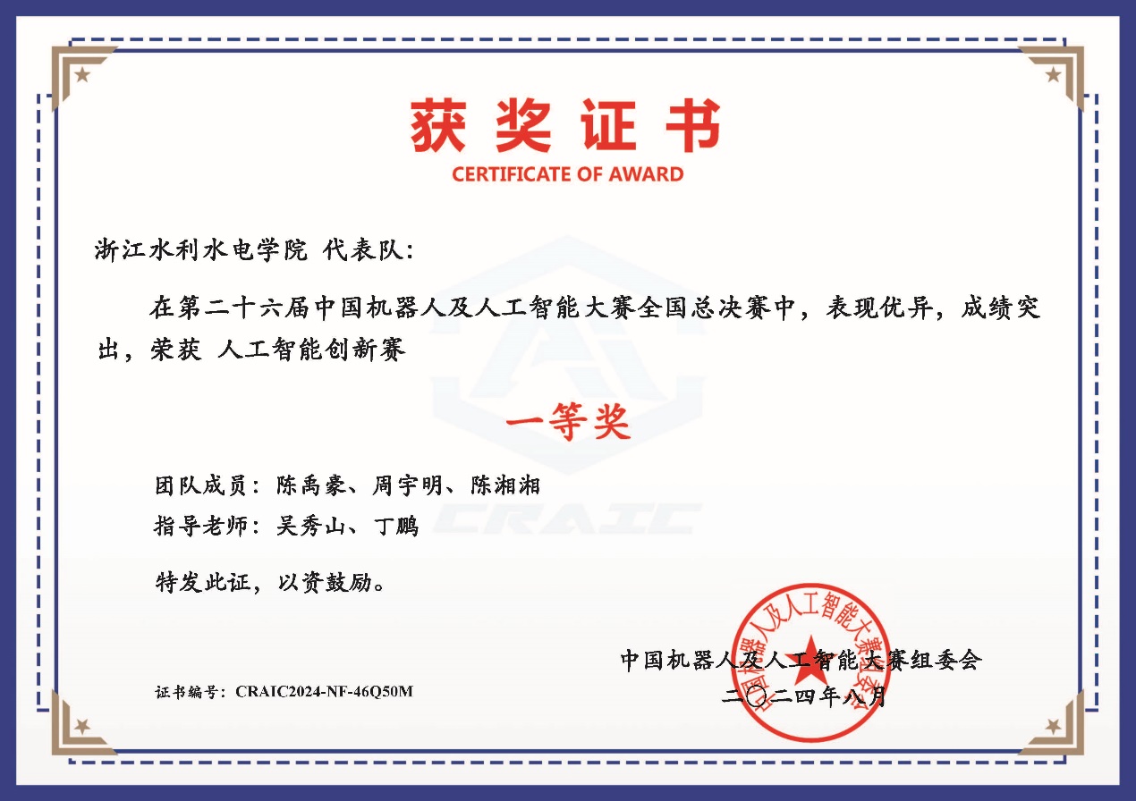 近日,第二十六届中国机器人及人工智能大赛全国决赛圆满结束,我校电气工程学院吴秀山和丁鹏指导的“纳伏级液冷超充电磁驭热技术”获人工智能创新赛全国总决赛一等奖。今年是我校首次参加该项赛事并斩获优异成绩,在全国847支决赛队伍中排名82位,位于前10%。