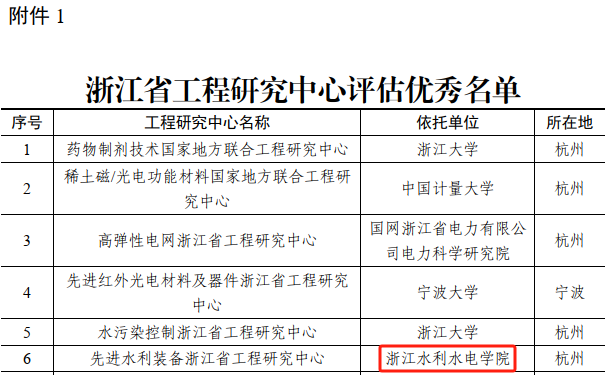 11月20日,浙江省发展改革委公布了浙江省工程研究中心建设及运行情况评估结果,我校“先进水利装备浙江省工程研究中心”再次获评优秀。
