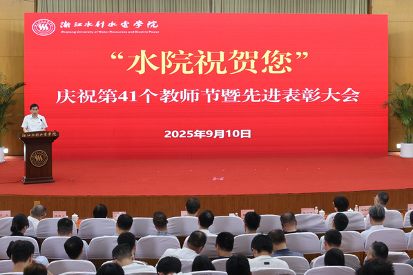 钱天国指出,作为省内唯一的水利水电特色工科类应用型高校,我们贯彻落实教育强国和教育强省战略,就必须以“贺信精神”为根本遵循,坚定不移走高质量有特色发展道路,全面建设高水平应用型大学。广大教师要心怀“国之大者”,牢记为党育人、为国育才初心使命,落实立德树人根本任务。要把师德师风摆在首要位置,作为从教第一课、终身必修课,深刻理解和把握中国特有的教育家精神的深刻内涵与实践要求,努力做引领学生成长的大先生。要紧跟时代步伐,自觉推动人工智能赋能教育教学改革,深化科教融汇、产教融合,探索以创新精神和实践能力为核心的人才培养模式,把“会读书的人”培养成为“会创造的人”。要坚持把论文写在大地上,围绕构建浙江特色现代化产业体系,深化产学研用合作,推进科技创新和产业创新深度融合,在服务创新浙江建设和新质生产力发展中彰显水院教师的担当与价值。