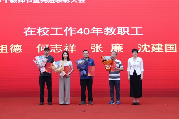 钱天国代表学校向辛勤耕耘在教育教学和管理服务一线的全体教职工以及关心支持学校发展的离退休老教师们,致以节日问候和衷心感谢,向受表彰的先进集体和个人表示祝贺。