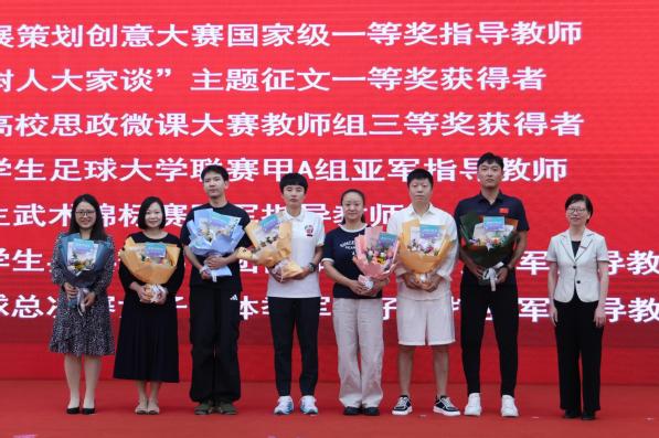 万健指出,教师是立教之本、兴教之源。学校近年来持续深化教育教学改革,不断加强师资队伍建设。广大教师团队在课堂教学、科研创新及社会服务中积极践行教育家精神,取得了显著成果,为学校发展注入了核心动力。希望大家以受表彰的先进为榜样,深刻领会、自觉践行教育家精神,不断提升教学、科研、管理和服务水平,以更强的责任担当和更高的职业追求,共同推动学校各项事业高质量有特色发展,为教育强国和教育强省建设贡献水院的智慧和力量。