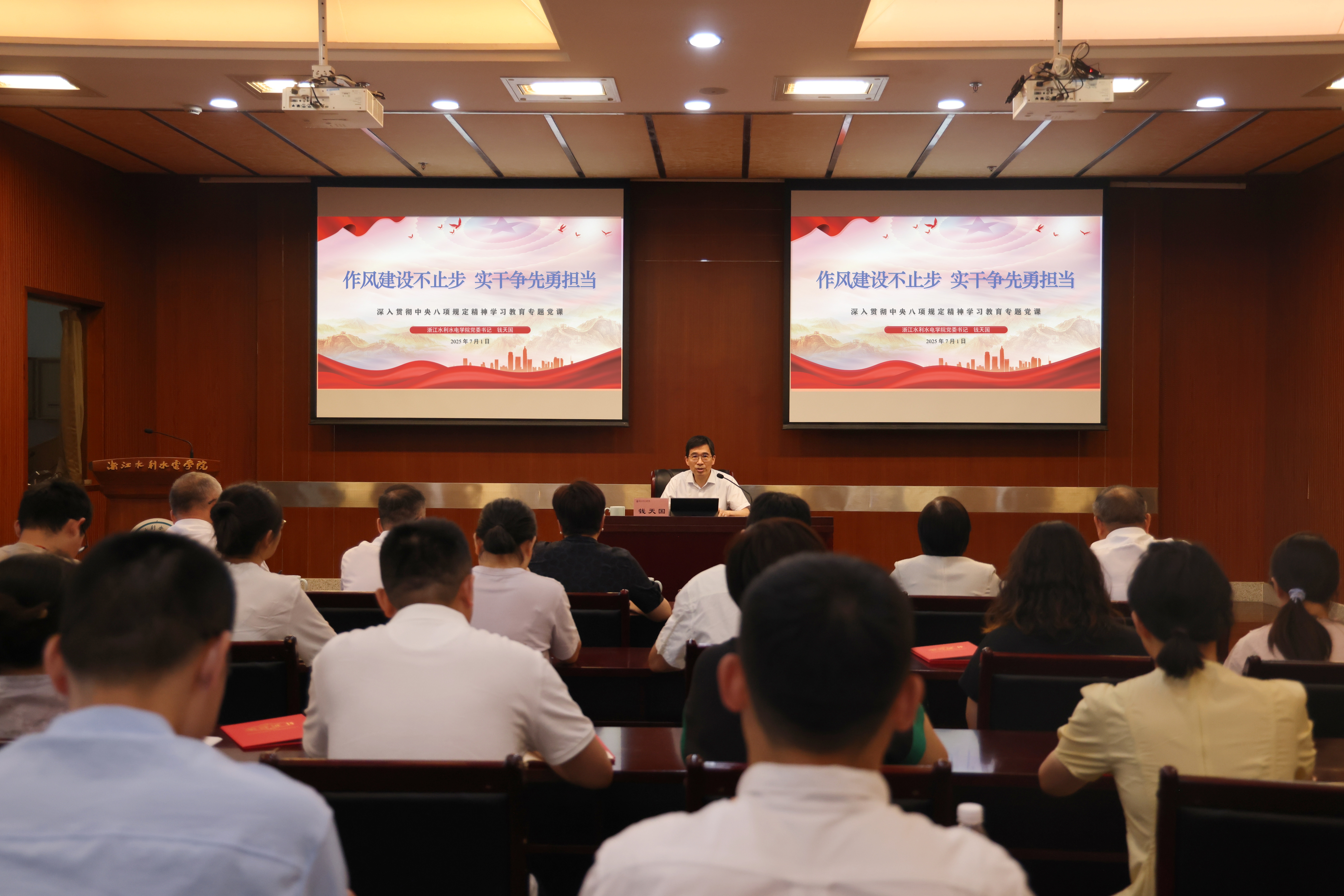 为庆祝中国共产党成立104周年,进一步弘扬伟大建党精神,推进深入贯彻中央八项规定精神学习教育,7月1日,学校在钱塘校区举行“八项规定淬初心 作风建设促发展”主题党日活动暨“两优一先”表彰会。