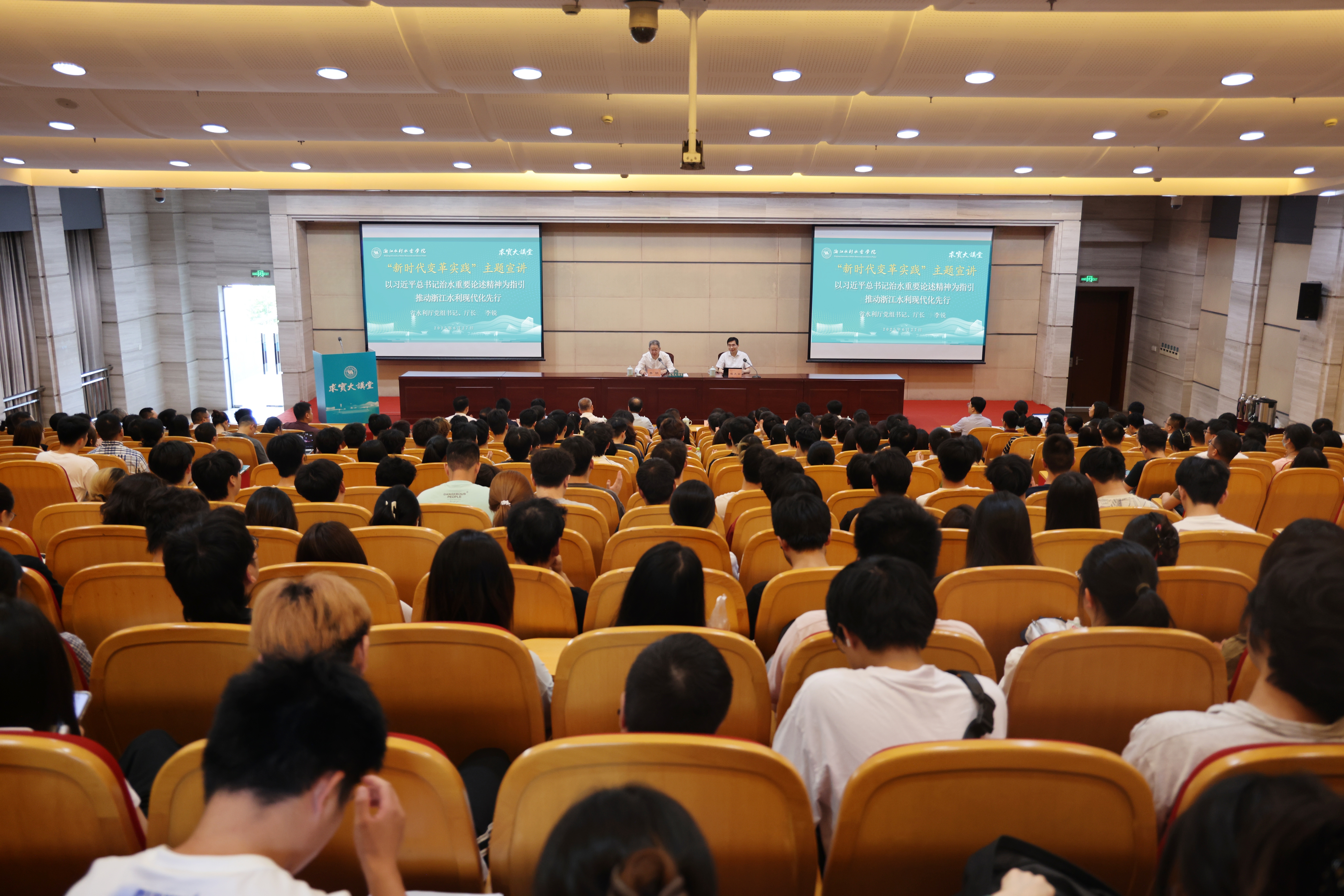 6月27日上午,省水利厅党组书记、厅长李锐来到浙江水利水电学院“求实大讲堂”,作题为《以习近平总书记治水重要论述精神为指引推动浙江水利现代化先行》的主题宣讲。校党委书记钱天国主持宣讲会,并宣布“求实大讲堂”正式启用。全体校领导、中层干部和师生代表聆听了宣讲报告。