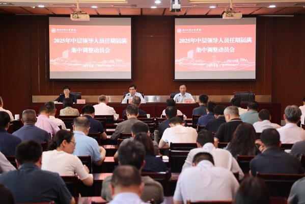 5月13日,学校在钱塘校区召开中层领导人员任期届满集中调整工作动员部署会。党委书记钱天国作动员讲话,校长万健主持会议,党委副书记吴小英通报中层领导人员任期届满集中调整工作方案。全体校领导、中层干部、正高职称教师以及民主党派负责人、教代会执委会成员参加会议。