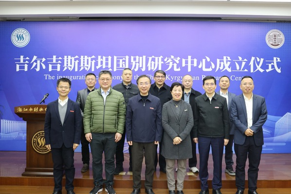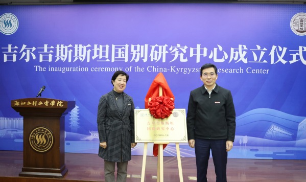1月9日上午,我校举行吉尔吉斯斯坦国别研究中心成立仪式。浙江省人民政府外事办党组成员、副主任陈艳勤和校党委书记钱天国共同为该研究中心揭牌。校长万健,吉尔吉斯斯坦国立技术大学、国务院发展研究中心领导致辞。会议由副校长李政辉主持。